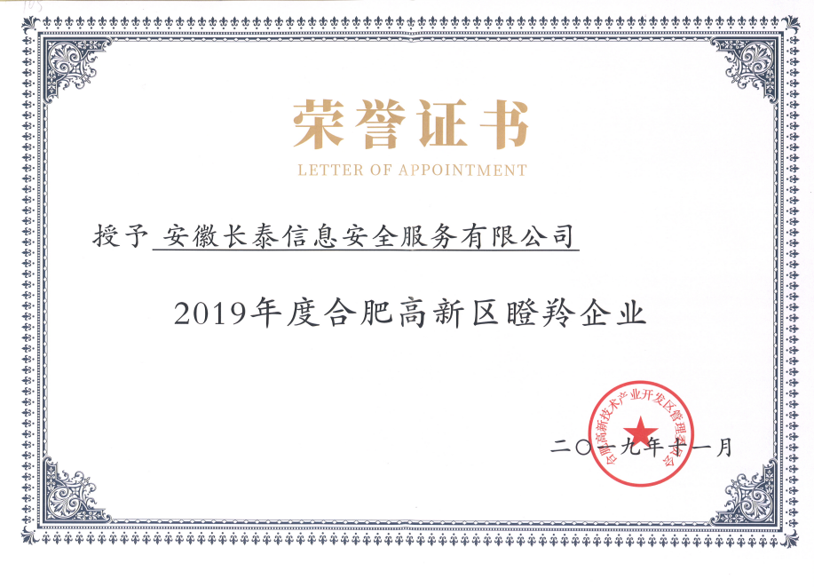 2019年,11月20日,合肥高新区2019年高成长企业榜单正式发布,高新区共认定了502家高成长企业,其中雏鹰企业275家、瞪羚培育企业72家、瞪羚企业149家、潜在独角兽企业3家、独角兽企业1家、平台型龙头企业2家。作为其中的高科技企业——安徽扬州袁建质量检测服务有限公司成功入选瞪羚企业榜单。